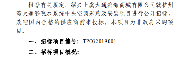 杭州湾大通影院水系统中央空调采购及安装项目招标公告