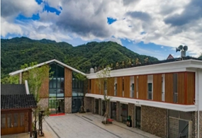 抖音基地位于岭南乡东澄村平山自然村,是一座处在梯田C位的三层魔方建筑,占地面积502.79平方米,建筑面积1056.59平方米,计划打造一个年轻创客集聚的复合型青创空间,每个工位都拥有“梯田景观房”级视野。
