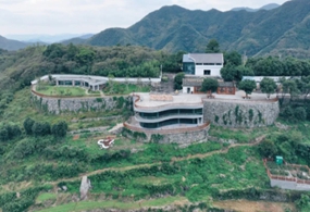 抖音基地位于岭南乡东澄村平山自然村,是一座处在梯田C位的三层魔方建筑,占地面积502.79平方米,建筑面积1056.59平方米,计划打造一个年轻创客集聚的复合型青创空间,每个工位都拥有“梯田景观房”级视野。
