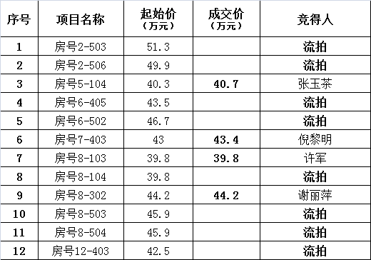 【中标公示】丰城新苑住宅拍卖第四期成交清单