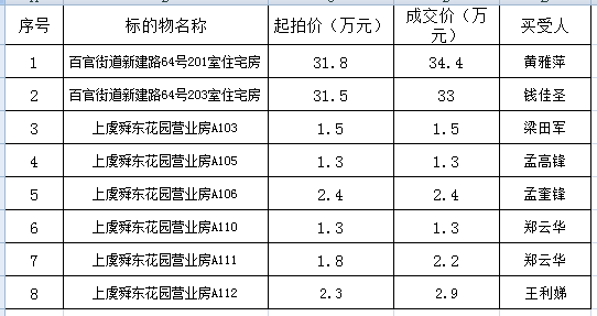 百官街道新建路64号教体局5处房产拍卖、舜东花园9间营业房的租赁权成交清单