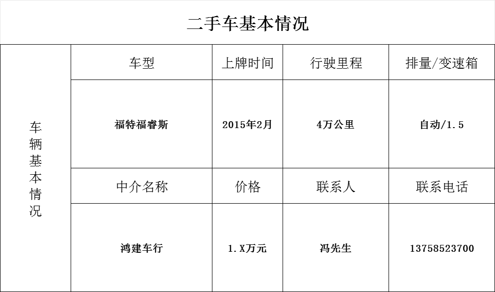 二手车转让(福特福睿斯)